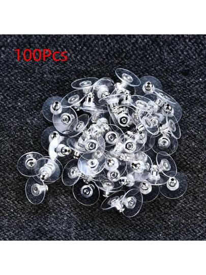 100Pcs Rubber Ear Backs Stopper Ear plug Stud Earring Back Supplies For DIY Jewelry Findings Making Accessories - Silver - View 1