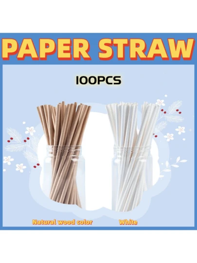 100 st/förpackning komposterbara papperssugrör - 19,56 cm långa sugrör för kaffe, te och drycker, perfekt för alla hjärtans dag, festtillbehör, perfekt för alla hjärtans dag, tillbaka till skolan, festtillbehör - Multifärgad - Visa 1