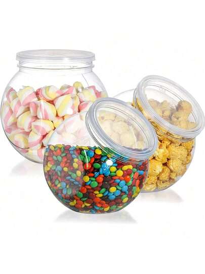10pcs 350ml Transparent Plastic Jars With Lids, Wide Mouth Design, Suitable For Kitchen Countertop Storage Of Candies, Gummies, Cookies And Snacks, Also Can Be Used For Home Decor, Party And Holiday Organization - Multicolor - View 10