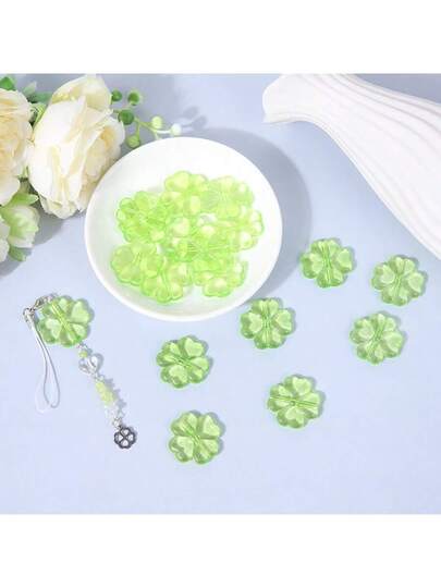 10pcs Minimalist New Acrylic Fresh Green Lucky Four-Leaf Clover Bead DIY Bracelet, Keychain, Bag Chain, Jewelry Accessories Suitable For Handicraft Lovers, Daily Use - Simple New Acrylic Fresh Green Lucky Four-leaf Clover - View 6