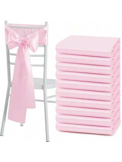 10 st rosa satinstolsrosett, bröllopsstolsband, sidenstolsknut, band för mottagning, restaurang, evenemang, bankett, fest, hotelldekorationer - Rosa - Visa 10
