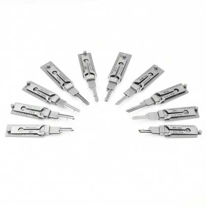 10pcs Professional Locksmith Tools, Lock Picking Training Tools, 2-In-1 Lock Pick Set - Silver - View 1