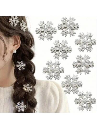 10 st/set julsnöflingehårspännen, håraccessoarer, metalliska alligatorhårspännen lämpliga för kvinnor med långt, tjockt hår och prinsessor, vinterjulhårspännen, julfestgåvor - Multifärgad - Visa 1