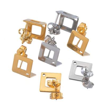 10pcs Stainless Steel Stud Earring Set Includes Earring Plugs, Geometric Hollow Round Disc, Oval Welded Post Earring Findings, Suitable For DIY Jewelry Making, Fashion Earring Accessories For Women - Stainless Steel Earrings - View 11