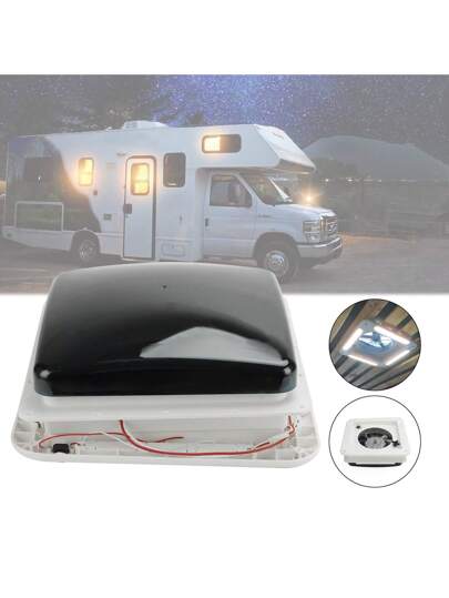 11" RV Caravan Roof Vent 3-Speed Motor RV Fan 12V Skylight With LED Light - Svart - Visa 5
