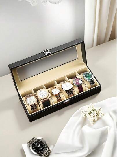 12/10/6/3/2 Slots Luxury Large Capacity Watch Storage Box, Watch Storage Box With Window, Black PU Leather Watch Box, Watch Display Box With Lock, Unisex, Mechanical Watch Storage Box With Safety Bezel, Can Place Watches, Is A Perfect Gift Display Box, Watch Display Box, Home Storage, Room Decoration, Unisex Gift, Holiday Gift. - Multicolor - View 1