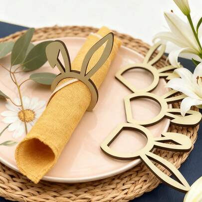12-Pack Cute Wooden Napkin Rings | Easter Bunny Design, Ideal For Easter And Rabbit Themed Parties | Wood, No Assembly Required - Multicolor - View 1