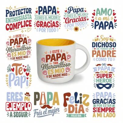 12 Spanish Father'S Day Themed UV Transfer Stickers - Suitable For Crafts, Mugs, Laptops, And Water Bottles, Self-Adhesive Plastic Decals, Mug Decorations, Laptop Stickers, Festive Decorations, Holiday Pattern Designs, High-Quality Printing,