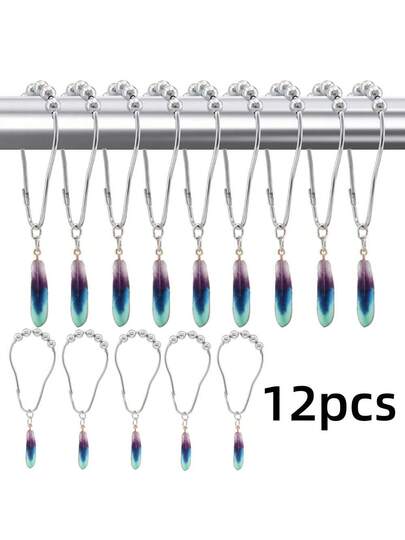12Pcs Purple Feather Decorative Shower Curtain Hooks. Features Waterproof, Rust-Resistant Metal Rings For Easy And Secure Installation. Suitable For Bathroom, Bedroom, And Kitchen Accessories. Create Personalized Christmas Gifts-Perfect As Impromptu Presents Or Festive Decorations. Discover Creative Inspiration, Handmade Christmas Cards - Multicolor - View 2