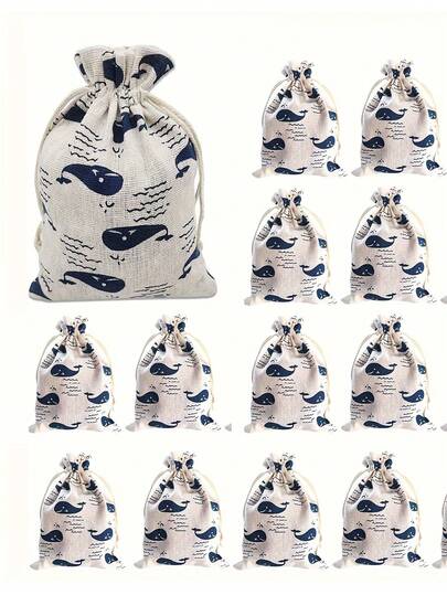12pcs Ocean Animal Drawstring Gift Bags - Whale And Tropical Fish Pattern, Whale Print Bags, Drawstring Gift Bags, Jewelry Packaging Bags, Wedding Party Favor Drawstring Bags, Birthday Party Gift Storage Decor Bags, Reusable Decorative Gift Bags, Candy Chocolate Packaging Bags, Suitable For Birthday, Pool Party And Beach Celebration, Wedding, Party Favors (1/4/12pcs)