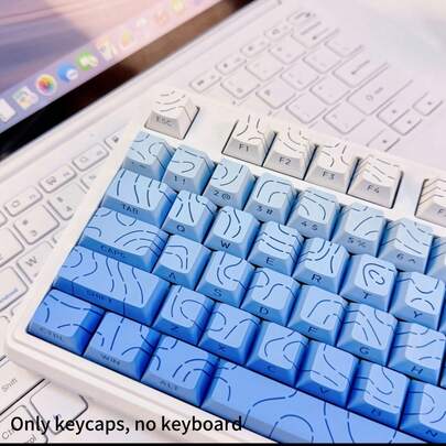 130+ Keycaps Set, Gradient Foggy Blue Contour Line Keycaps (Keycaps Only), Crack Lighting Side-Printed Keycaps Compatible With 104/98/87/75/68/64/61 Keys - Baby Blue - View 1