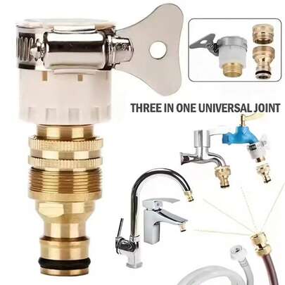 15-23mm Universal Brass Faucet Adapter, 3-In-1 Design (1 Male, 1 Female, 1 PTFE Thread), Metal Faucet Connector For Garden, Lawn And Car Washing, NPT/BSPT Thread, Easy Installation - Gold - View 1