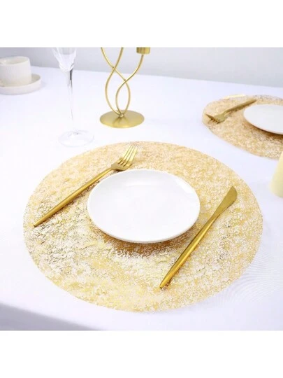 15/30/60/120pcs Disposable Net Lace Gold Foil Placemat, Suitable For Birthday Party, Holiday, Wedding, Dinner, BBQ, Indoor & Outdoor Dining, Heat Insulation, Table Protection, Home Kitchen Table Decor - Gold - View 1