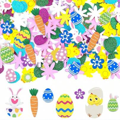 150pcs 3D Easter Stickers, Rabbit And Egg Shaped DIY Foam Creative Stickers, Easter & Spring Theme Self-Adhesive Rabbit & Egg Shaped Stickers For Party Crafts - White - View 9