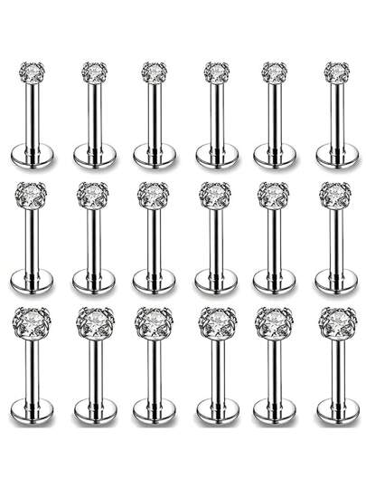 18Pcs 16G Lip Rings, Stainless Steel Medusa Piercing Jewelry 2mm 3mm 4mm Forward Helix Earring, Labret Monroe Piercing Jewelry for Women Men - Silver - View 1