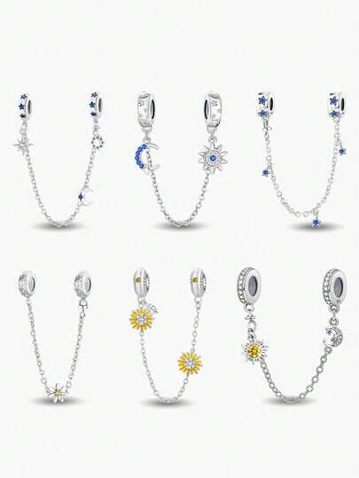 1 st 925 sterlingsilver sol-, måne- och stjärnsäkerhetskedja lämplig för armband gör-det-själv-smycken för kvinnor - Silver - Visa 17