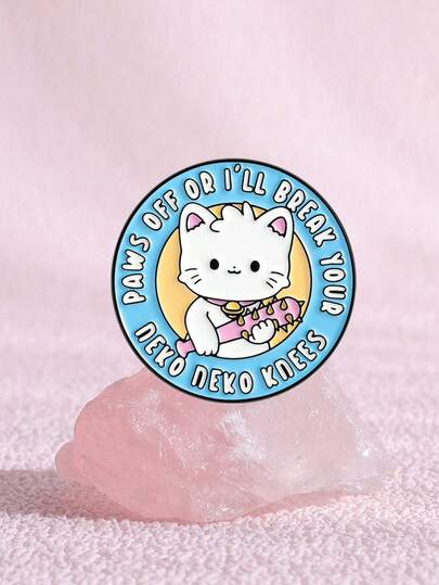 1PC Cute Angry Cat Enamel Pins Cute Cartoon Paws Off Or I Will Break Your Knees Brooches Lapel Badges Fun Jewelry Gift For Friends - Multicolor - View 1