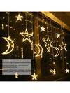 1pc 2024 New LED Curtain Lights, Star & Moon Lights, Bedroom & Room Decor Lights, Ramadan Lighting, Suitable For Home, Holiday Window Decor, Ideal For Birthday, New Year, Valentine's Day Decor And Holiday Ambiance Lighting
