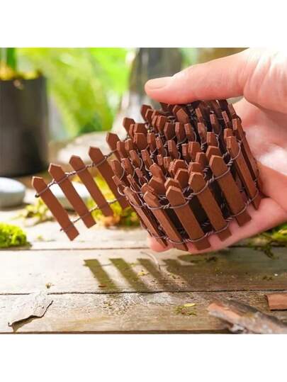 1PC Mini Wooden Fence Miniature Fence For Fairy Garden Micro Landscape Flower Pots Accessories Ornaments For Home Room Garden 35.4in*2in - Coffee Brown - View 7