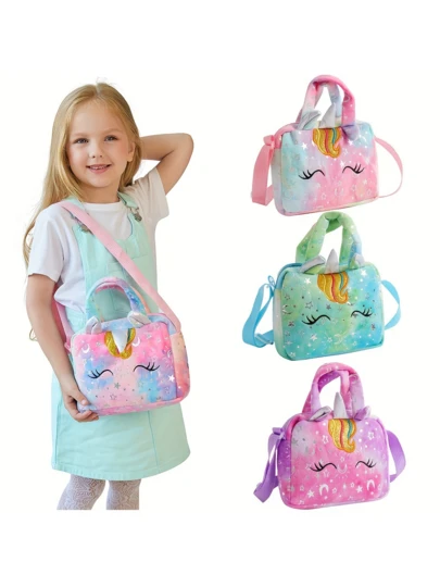 1PC Mixed Color Random Handbag, Cute Unicorn Crossbody Bag, Simple Zipper Closure, Lightweight And Compact For Easy Carrying, With Adjustable Shoulder Strap, Suitable For Outings, Daily College Life, Parties, Shopping, And An Ideal Gift Choice - Multicolor - View 1