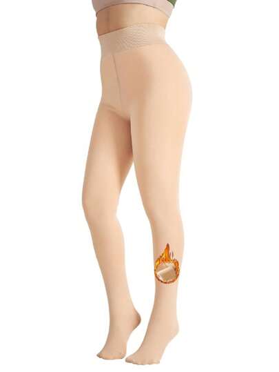 1Pair Thermal Lined Opaque Tights For Women 200D Warm Winter Pantyhose With Control Top - Khaki - View 1
