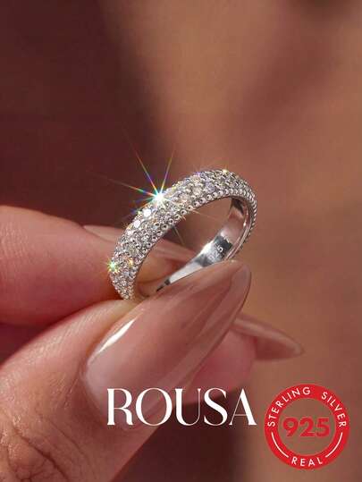 1pc 925 Sterling Silver Triple Row Full Diamond Edged Ring, Suitable For Women, Elegant Crystal Earrings, Luxury Jewelry