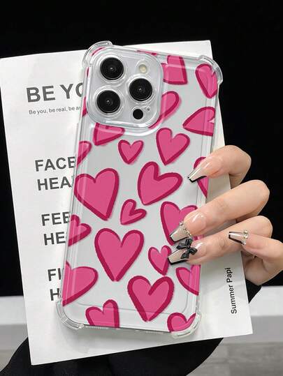 1pc TPU Bumper Thickened Anti-Fall Heart Print Phone Protective Case, Compatible With Iphone11 12 13 14 11Promax 12Promax 13Promax 14Promax XR 15 15PRO 15PROMAX, Series