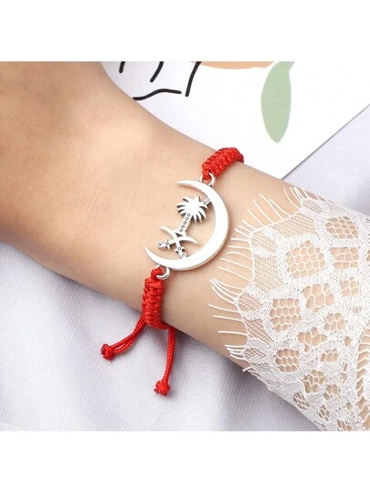 1pc  Metal Pendant Braided Bracelet Couple Handmade Lucky String Adjustable Bangles Jewelry Woomen Red Gift New - Multicolor - View 1