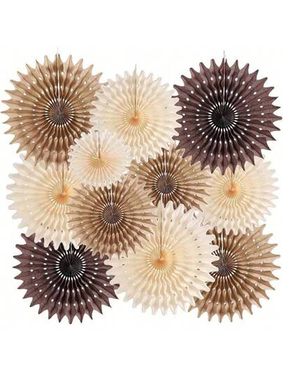 1 st/11 st/13 st bruna festdekorationer, neutrala festdekorationer, ihåliga runda pappersfläktar med bikakemönster, rustika födelsedags- och bröllopsfesttillbehör, blå födelsedagsfestdekorationer, serpentinerdekorationer - Brun pappersfläkt - Visa 10