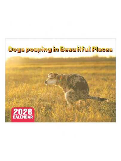 1pc 2026 Dog Poop Day Calendar - Monthly Planner, Depicting Quirky Scenes Of Dogs In Nature, Monthly Wall Decor Planner, Suitable For Home Or Office - Multicolor - View 1