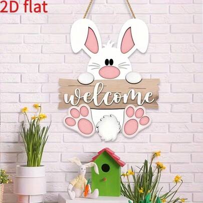 1pc 2D Wooden Printed Rabbit Welcome Sign, Door Hanging Decor, Entrance Yard Hanging Ornament, Suitable For 11 Holidays - A - View 1