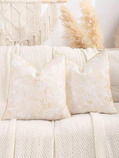 1pc/2pcs Gold Decorative Throw Pillow Cover, Jacquard Faux Silk Luxury Geometric Abstract Pattern For Living Room, Sofa, Bedroom Home Decor - Beige - View 2