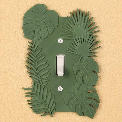 1pc 3D Printed Tropical Plant Switch Decorative Frame, Monstera Leaf & Palm Leaf, Fresh Green Plant Style Wall Switch Decor Accessory, Comes With Screws, No Power Required - Multicolor - View 1