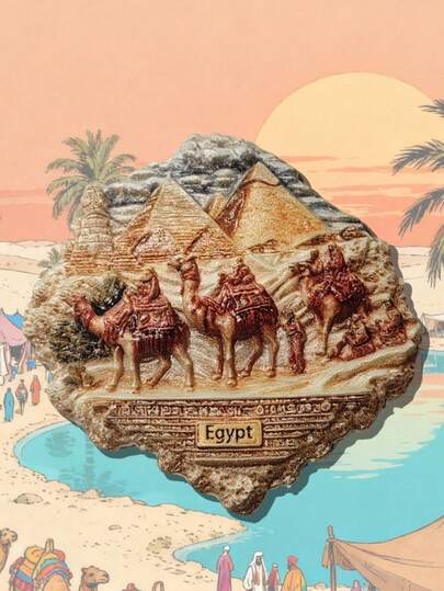 1pc 3D Stereo Egyptian Style Gold Pyramid Camel Refrigerator Magnet, Silk Road Desert Theme Magnetic Sticker, Home Decor Creative Gift, 3D Stereo Exquisite Relief Resin Crafts Refrigerator Magnet, Kitchen Decor, Famous Scenery Magnet, Travel Lover Home Decor Gift
