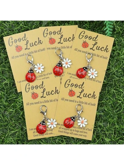 1pc/3pcs/5pcs/10pcs Lucky Ladybug & Daisy Keychain Charm Set, Alloy Cartoon Animal Themed Keychain With Lobster Clasp, DIY Pendant For Necklace Bracelet Earrings, Decorative Ladies Key Ring, Good Luck Blessing Card Gift - Red - View 9