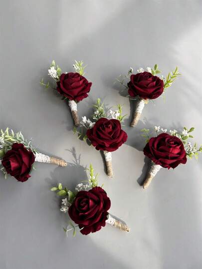 1 st/6 st konstgjorda rosblommor brudgum boutonniere corsage för män bröllopsblommor examen för festdekoration alla hjärtans dag tillbehör - corsage - Visa 6