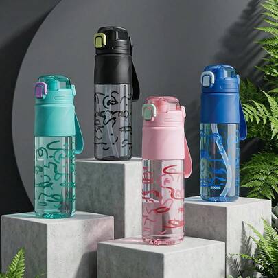 1pc Approx. 900ml/30oz Cute Graffiti Print Straw Sports Water Bottle, Leak-Proof Design With Strap For Easy Carrying, Suitable For Outdoor Sports, Cycling, Camping, Fitness, Hiking And More, Also Great As Birthday Or Holiday Gift