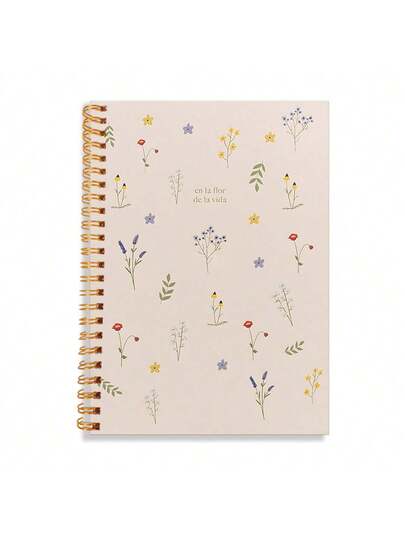 1pc A5 Spiral Notebook, Vintage Floral - Inspired Journal, Retro Cream Background With Dainty Flowers, Spiral Bound For Flexibility, Perfect Back To School Gift For Students, Charming Present For Friends - A5 - View 1