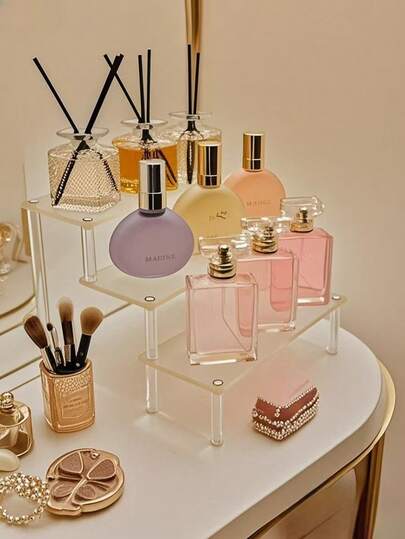 1pc-Acrylic Cosmetics Organizer, Multi-Layer Transparent Display Stand, Suitable For Perfume, Skin Care Products, Cosmetics, Bathroom, Bedroom, Home Decoration, Reinforced And Sturdy Trapezoidal Design - Clear - View 1