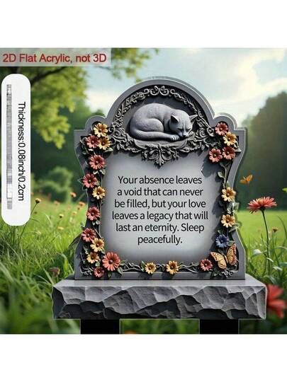 1pc Acrylic Garden Marker, Memorial Stone Base Design, Pet Memorial, Loved Cat/Dog Plaque, Outdoor Pet Tribute, Pure Love, Tombstone Style, Durable Outdoor Decor, 2D Flat - Multicolor - View 1