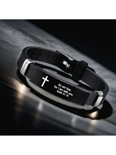 1 st justerbart kristna armband för män, rostfritt stål & silikonband med korsberlock och bibelvers, inspirerande religiösa smycken present till make, far, pojkvän, son - Svart - Visa 1