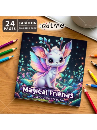 1pc Adult Coloring Book "Magic Friends", 24 Pages Bold & Beautiful Designs, Cute & Comfortable, Christmas, New Year, Birthday, Party, Back To School Gift, 7.9*7.9in - Magic Friends - View 1