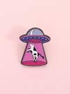 1PC Funny UFO Spaceship Cow Brooch Enamel Pins Sci-Fi Animal Brooches Backpack Lapel Badge Fashion Jewelry Gift For Friend