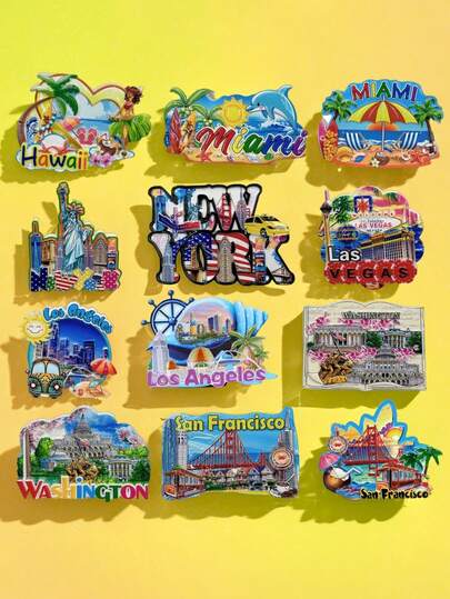 1pc American City Landmark Refrigerator Magnet, Travel Souvenir Home Decor Magnetic Fridge Sticker - Multicolor - View 17