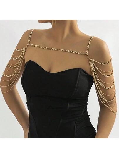 1pc Asymmetrical Sexy Multi-Layer Tassel Body Chain, Fashionable Charm Jewelry For Women, Perfect Gift For Friends, Party Or Festival - Yellow Gold - View 1