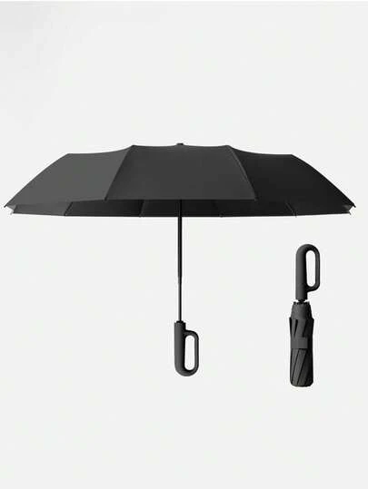1pc Automatic Folding Umbrella With Buckle, 8 Ribs, Extra Large & Thick, Dual Use Sunshade & Rainproof, High Density Fabric, Lotus Leaf Repellent, Suitable For Men & Women, Portable, Wind & Rain Resistant, Dual Layer Protection, Random Handle Style (Rotating Or Buckle) - Multicolor - View 10