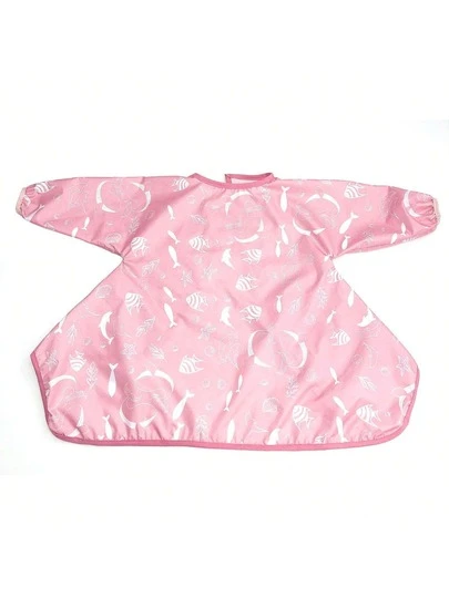 1 st vattentät långärmad haklapp för baby, tecknad matningsrock för småbarn, skyddskläder för konstmålning för barn - Rosa havet - Visa 4