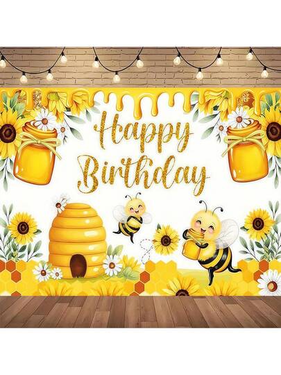 1 st. bakgrund för fest med bi och solros - livfull gul honungskaka, prästkrage och söt bi-design, lämplig för födelsedagar, bröllop, fester och högtidsdekorationer, inomhus-/utomhusbruk, kan användas som fotobakgrund, finns i flera storlekar - Multifärgad - Visa 1