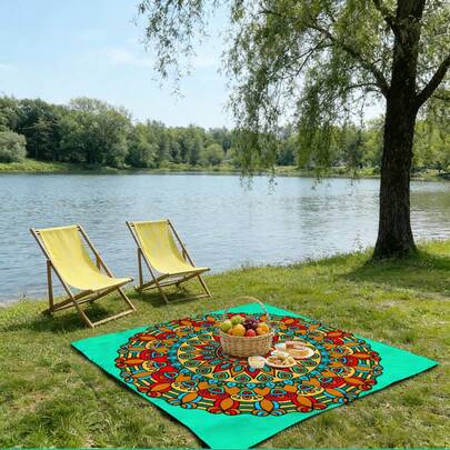 1pc Bohemian Style Outdoor Beach Blanket, Picnic Mat For Travel, Hiking, Camping, Lawn, Park, Swimming Pool, Outdoor Activities, Picnic Essential, RV Camping Mat, Portable & Washable