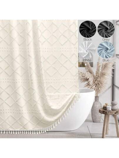 1 st. bohemiskt vitt duschdraperi i vävt tyg med tofsar, 180 x 180 cm, modern lantlig minimalistisk stil, plysch chevron retrotextur, vattentätt draperi för badrum, hotellinredning, badrumstillbehör - Multifärgad - Visa 25